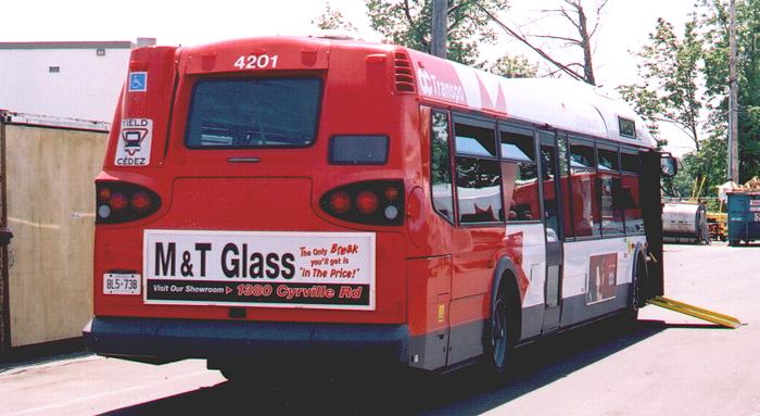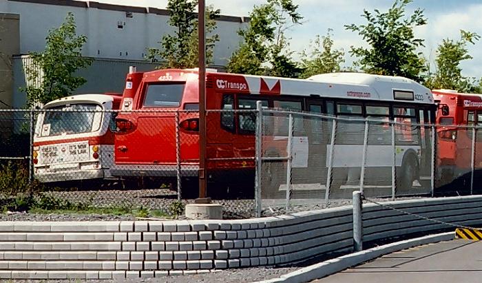 4067 is on display behind the St. Laurent garage at the “Open Doors Ottawa” open house on June 4, 2005. These buses were the first to be ordered in the “Maple Leaf” livery. |